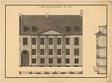 The area known as New Copenhagen was incorporated into the fortified city in the 1670s. The property now known as Store Kongensgade No. 110 was in 1689 owned by a Hofråd named Hess.[1] Two small houses connected by a gate was constructed on the site in 1710. The owners of the property operated a brewery in the courtyard up through the 18th century.[2] In 1756, it was owned by a brewer named Lauritz Jørgensen.[1]