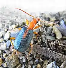 Brachinus is a genus of ground beetle native to the Nearctic, Palearctic, the Near East and North Africa. Beetles in this genus are commonly referred to as bombardier beetles. The genus contains the following species:[1]