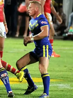 He made his first team début for the Warrington Wolves in March 2012[3] and scored his first Super League try in a local derby against Widnes Vikings a month later.[4]