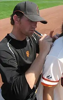 On January 18, 2008, the Giants and Hennessey avoided arbitration and agreed to a $1.6 million, one-year deal.[37] After he posted a 12.94 in his first 11 games of the season, he got sent down to the minors on May 6 to make room for Billy Sadler.[38] Used as a starter at Fresno, Hennessey posted a 7–10 record, a 4.83 ERA, 69 strikeouts, 37 walks, and 132+1⁄3 innings pitched in 21 starts.[3] He was called back up when rosters expanded on September 1.[39] After initially pitching out of the bullpen, he was moved to the rotation to replace Correia.[40] On September 15, he threw the only complete game of his career, allowing three runs in eight innings in a 3–1 loss to the Arizona Diamondbacks at Chase Field.[41] In 17 games (four starts), he had a 1–2 record, a 7.81 ERA, 21 strikeouts, and 15 walks in 40+1⁄3 innings pitched.[1] He was outrighted to the minors in October, but he refused the assignment and became a free agent.[42]