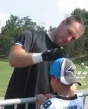 ![]() Brad Hoover signing autographs at the Panthers' training camp facility in Spartanburg, SC. | |