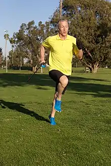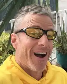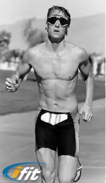Brad Kearns (born February 4, 1965 in Los Angeles, California) is an American author, podcast host, professional speed golfer, masters high jumper, and former professional triathlete. Kearns performed on the international triathlon circuit from 1986 to 1995 and won 31 events worldwide. He is currently a top-20 world-ranked professional speed golfer, and 2020 top-3 world-ranked masters age 55-59 high jumper. In 2018, Kearns broke the Guinness world record for the fastest single hole of golf ever played (minimum length, 500 yards).