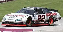 While testing at Road Atlanta in August, Keselowski was driving over 200 miles per hour on a straightaway, but his brakes unexpectedly failed. Keselowski could not stop and slammed into a solid concrete wall violently at approximately 190 MPH and broke his left ankle.[18] Keselowski was airlifted to a hospital, claiming he had terrible back pain. Despite racing with injuries, Keselowski won his second race of the season at the Good Sam RV Insurance 500 at Pocono Raceway less than a week after the accident. The win put him into contention to grab one of the two "Wild Card" spots available in the Chase for the Sprint Cup championship.[19]