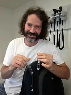 ![]() Brad Turner shows off his cerebrospinal fluid | |||