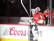 The Capitals' head coach Barry Trotz opted to choose back-up goaltender Philipp Grubauer to start the 2018 Stanley Cup playoffs.[20] After Grubauer struggled against the Columbus Blue Jackets in the first two games, Holtby stepped in as the Capitals starting goaltender, not being pulled for the remainder of the playoffs. Holtby helped to lead the Capitals to their first Stanley Cup in franchise history, posting a record of 16–7, a .922 save percentage, a 2.16 goals against average and two consecutive shutouts against the Tampa Bay Lightning in the Eastern Conference Finals. Holtby is remembered for a play during Game 2 of the 2018 Stanley Cup Finals, in which he made a sprawling stick save on an open-net shot by Vegas Golden Knights forward Alex Tuch. If Tuch had scored, the Golden Knights would have tied the game with two minutes remaining in the third period.[21] Many people refer to Holtby's stick save as "The Save".