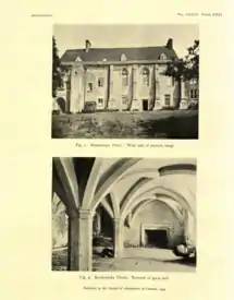 John Aubrey described the priory as "Very well built, with good strong ribs", and having a cellar "the stateliest in Wiltshire".[2] But he added "the very fundations [sic] of this fair church are now, 1666, digged up, where I saw severall freestone coffins ... and severall capitalls and bases of handsome Gothique pillars. On the west end of the hall was the King's lodgeings, which they say were very noble, and standing about 1588."[17]