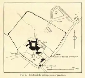 By the 14th century, Bradenstoke Priory had gained wealth and lands in nine counties besides Wiltshire.[7] This does not imply that the community lived in luxury or were corrupt. It was not a backwater, since in its latter years it had benefitted from the residence of its then prior, Thomas Wallashe, in the household of Cardinal Bainbridge, Archbishop of York, during his embassy in Rome (1509–1514), leading to grant of extensive papal privileges to the priory.[8]