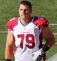 He appeared in all 16 of the regular season games on special teams and started the last 12 games of the regular season at left tackle.[7] He struggled throughout his first season in Arizona and was rated 76th out of 76 tackles that qualified by Pro Football Focus.[8]