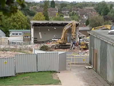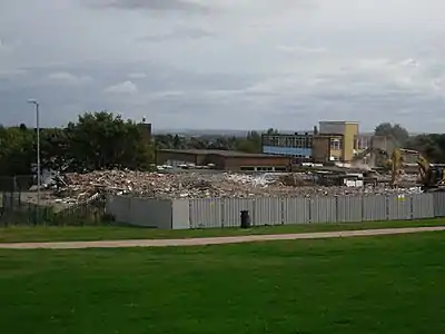 In the Summer of 2009 demolition of the unsafe blocks in the upper school was completed, demolishing the science block, 3 storey tower block, and the 6th form block, leaving the gym, changing rooms, barn, and the art and music block, built by more recent construction. Prompt demolition was favoured to reduce the running costs of empty buildings.[31]