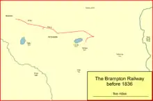 The Brampton railway was a mineral railway built in 1798 to bring coal from workings on Tindale Fell to staiths at Brampton. It was a development of short sections of earlier wooden railways.