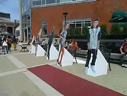In 2013, Brampton Day (traditionally in September) was merged into the events held on the day of the Flower City Parade.[32] Events included a "Walk of Fame", promising that you could "get your photo taken with your favourite star!"[33] Larger-than-life cardboard cutouts of celebrities were posted along a red carpet. Celebrities were Lady Gaga, Britney Spears, Usher, Beyoncé, Justin Bieber, Christina Aguilera, Justin Timberlake, Katy Perry, and Adam Levine.