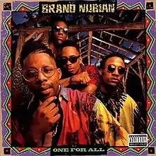 One for All is the debut studio album by American hip hop group Brand Nubian, released on December 4, 1990, by Elektra Records. The album was highly acclaimed for its politically charged and socially conscious content. Sales never matched the wide acclaim — the album has only sold 350,000 copies as of May 2013 — but it has remained in print since its 1990 release. The album is mainly produced by Brand Nubian, but it also features production by Skeff Anselm, Stimulated Dummies, and Dave "Jam" Hall. The album's production contains many motifs of hip hop's golden age including James Brown-sampled breakbeats and funky R&B loops. The album is broken down track-by-track by Brand Nubian in Brian Coleman's book Check the Technique.[1]
