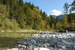 It is a 38 km (24 mi) long left tributary of the Inn. It starts as the outflow of the Spitzingsee in southern Bavaria, and flows from North to South to the town of Rattenberg where it merges with the Inn.