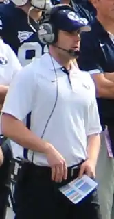 Brandon Doman (born December 29, 1976) is an American football player and coach. He is the former offensive coordinator for the Brigham Young University (BYU) Cougars. Doman played quarterback for BYU in 2000-2001 and was drafted by the San Francisco 49ers in the 2002 NFL Draft. He was the offensive coordinator at BYU in 2011-2012 before being replaced in 2013 by Robert Anae.[1]