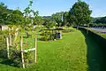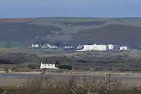 The South West Coast Path National Trail passes through the village and gives access for walkers to the spectacular North Devon coast. The Tarka Trail also passes through the village. Braunton Burrows marsh on the west side of the parish is a designated biosphere reserve, the first place in Great Britain to have gained such status.[6] The coastal part of the parish lies within the North Devon Coast Area of Outstanding Natural Beauty, and comprises Saunton Sands to the west, a beach of finely-grained sand, and to the south the estuary of the River Taw, of mixed mud and sand. The north of Braunton Burrows are open to light public access and have been converted into a Links Golf Course. Braunton was half-surrounded by an extensive brackish salt-water marsh restricting available agricultural land. In 1808 this was surveyed by Charles Vancouver, for the Board of Agriculture, who recommended that the marsh should be enclosed and reclaimed. This met with local approval and James Green was appointed as engineer for the drainage scheme. An Act of Parliament was obtained for the purpose on 25 May 1811.[n 1] On completion, responsibility for the marsh passed Marsh Inspectors, who sanctioned further work in 1854, involving the straightening and embanking of the River Caen, or Braunton Pill, to form the Braunton Canal. The scheme was completed by the addition of a new quay at Velator in the 1870s.[7]