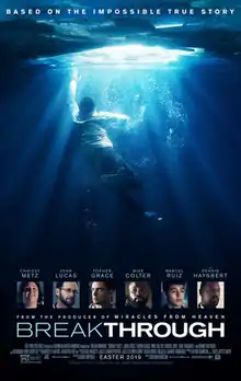 Breakthrough is a 2019 American Christian drama film directed by Roxann Dawson in her feature film directorial debut.[4] The film was written by Grant Nieporte, based on the Christian book, The Impossible, an account of true events written by Joyce Smith with Ginger Kolbaba. It stars Chrissy Metz, Josh Lucas, Topher Grace, Mike Colter, Marcel Ruiz, Sam Trammel, and Dennis Haysbert with a cameo by Phil Wickham and Lecrae. Stephen Curry and Samuel Rodriguez are executive producers.[5][6]