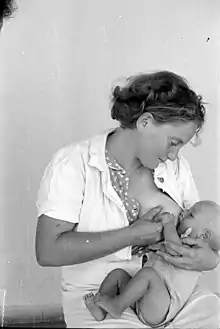 Breastfeeding and mental health is the relationship between postpartum breastfeeding and the mother's and child's mental health. Research indicates breastfeeding may have positive effects on the mother's and child's mental health, though there have been conflicting studies that question the correlation and causation of breastfeeding and maternal mental health.[1] [2] Possible benefits include improved mood and stress levels in the mother, lower risk of postpartum depression, enhanced social emotional development in the child, stronger mother-child bonding and more. Given the benefits of breastfeeding, the World Health Organization (WHO), the European Commission for Public Health (ECPH) and the American Academy of Pediatrics (AAP) suggest exclusive breastfeeding for the first six months of life.[1] Despite these suggestions, estimates indicate 70% of mothers breastfeed their child after birth and 13.5% of infants in the United States are exclusively breastfed.[3] Breastfeeding promotion and support for mothers who are experiencing difficulties or early cessation in breastfeeding is considered a health priority.[1]