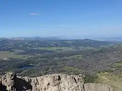 View from Breccia Peak to west, to Teton Range, Lost Lake in the foreground.