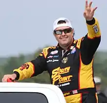 He then decided to move to stock car racing. He ran in the Winston West Series in 1999, and was the 2000 and 2001 champion on the circuit. He attempted to qualify for a Busch Series race at Pikes Peak International Raceway in 2000,[9] but failed to make the race. In 2001, he made his Busch Series debut at Fontana for Ed Whitaker but finished 41st. The next week, he attempted his first Winston Cup race at Las Vegas but failed to qualify. He also ran seven times in the Truck Series for Bill McAnally and TKO Motorsports, and had two top-five finishes.
