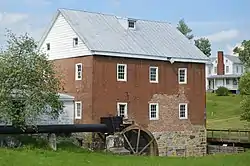 Breneman-Turner Mill is a historic grist mill located near Harrisonburg, Rockingham County, Virginia. It was built about 1800, and is a 2 1/2-story, Federal style brick building. The building retains its water wheel, measuring 16 feet in diameter and 5 feet wide, and three sets of burr stones. The mill survived General Philip Sheridan’s burning of the Shenandoah Valley in 1864, and remained in operation until 1988.[3]