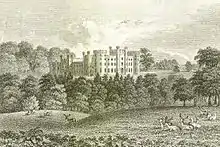 The fifth Earl demolished the mansion and built the present Hall (c.1812) to a design by Sir Jeffry Wyatville.