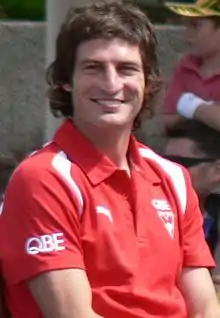 Brett Kirk (born 25 October 1976) is a former Australian rules football player of the Sydney Swans and was the AFL's International Ambassador.[2] Kirk is currently serving as an assistant coach with the Sydney Swans.[3]