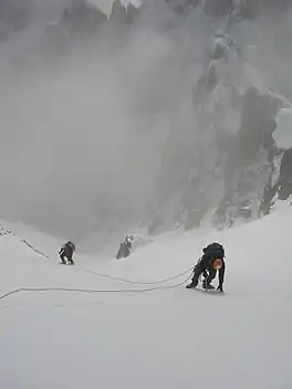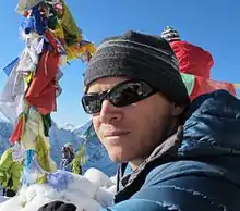 Brian Dickinson (born June 16, 1974) is a climber who soloed the summit of Mount Everest on May 15, 2011,[1] after his Sherpa mountain guide became ill and went back down to high camp (South Col, 26,000'). After taking some pictures and making a radio call, Brian began his descent but within a few feet he became snow blind. His vision did not fully return for over a month. His descent to high camp from the summit took over seven hours, instead of the expected two to three hours. Brian ran out of oxygen on his descent but made it down to the South Col where his guide met him to help him back to his tent. Brian holds the record for the highest solo blind descent.[2][3]