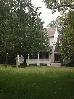 The Brick House on the Pike, Elerslie, Three Brothers is a historic home located at Ellicott City, Howard County, Maryland, United States.[2] It is a large two-story, side-passage, double-pile plan house constructed in two phases, a brick structure built by Caleb Dorsey replacing a wooden structure when he bought the property at the end of the 18th century, and the larger more formal section built by his son Charles Worthington Dorsey about 1817. Also on the property and contemporary with the main house are an ice house foundation, a stone stable or carriage house and three board-and-batten outbuildings dating from the late 19th or early 20th century. The early Federal features of the house were left essentially untouched in the alterations that took place about 1907, and have remained intact. Edward Hammond undertook this modernization after being given the house as a wedding present by the father of his wife, Reubena Rogers. Electricity, central heat, and a capacious front porch were added, and the roof of the older section of the house was raised, creating a full second floor with dormer windows. Public water, sewer, gas, and modernization of utilities were accomplished between 1995 and 2009 by Dr Edward Rogers, a direct descendant of Caleb Dorsey. The previous owners, the Lassotovitch, Hammond, Ligon, and Dorsey families are all related. Governor Thomas Watkins Ligon (1810–1881) of Maryland lived in the house, having married a Dorsey, before they moved to White Hall, nearby.[3]
