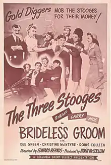 Brideless Groom is a 1947 short subject directed by Edward Bernds starring American slapstick comedy team The Three Stooges (Moe Howard, Larry Fine and Shemp Howard). It is the 101st entry in the series released by Columbia Pictures starring the comedians, who released 190 shorts for the studio between 1934 and 1959.