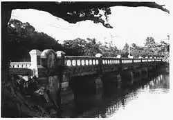 Bridge No. 122, spanning the Santiago River near Naguabo, Puerto Rico, is significant as "one of the earliest and most elegant examples of concrete beam bridges in Puerto Rico". Built in 1918, it was "futuristic" for its time and has noteworthy architectural detail relative to others.[2]: 17, 36 It was designed by Rafael Nones and built by Felix Benitez-Rexach, both engineers, both regarded as masters in their work.[3][2]: 17 Its construction was financed by Puerto Rico's second public bond issue for public works, in 1916, which raised $2 million.[3][2] : 17