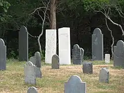 The Bridge Road Cemetery is an historic cemetery on Bridge Road in Eastham, Massachusetts. It is a roughly 1.4-acre (0.57 ha) rectangular parcel on the west side of Bridge Road. The cemetery was established in 1720, and marks the location of the town's second meeting house. It was the second cemetery established in the town, after the Cove Burying Ground. The cemetery was in use from 1720 until the late 1880s; its earliest dated grave is marked 1754. Most of the burials took place between 1770 (when burials ended at Cove Burying Ground) and about 1830, when a new cemetery was laid out further north. There is a single 20th-century burial, dated 1933.[2]