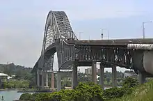 The Bridge of the Americas (Spanish: Puente de las Américas; originally known as the Thatcher Ferry Bridge) is a road bridge in Panama which spans the Pacific entrance to the Panama Canal. Designed by Sverdrup & Parcel, it was completed in 1962 at a cost of US$20 million, connecting the north and south American land masses. Two other bridges cross the canal: the Atlantic Bridge at the Gatun locks and the Centennial Bridge.[1]