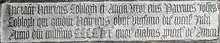 Hic jacet Henricus Coblegh et Alicia uxor eius parentes Joh(ann)is Coblegh qui quid(a)m Henricus obiit vice(n)simo die mens(is) Julii Anno d(o)m(ini) mill(ens)imo cccc.o (quadringentensimo) lxx.o (septuagensimo) quor(um) a(n)i(m)abus pr(opiti)et(ur) de(us) Amen (Here lie Henry Coblegh and Alice his wife the parents of John Coblegh which certain Henry died on the twentieth day of the month of July in the one thousandth four hundredth and seventieth year of Our Lord on the souls of whom may God look with favour)