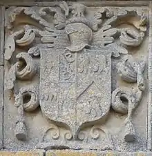 - Mary Giffard (died 1598), wife of John Wykes (c. 1520 – 1591), of North Wyke in the parish of South Tawton, Devon, whose effigy exists in the Wyke Chapel in St Andrew's Church, South Tawton.[17][18] He is known locally as "Warrior Wykes", and commanded a horse regiment as indicated by the spurs on his effigy. He fought at Havre de Grace and was wounded. He built much of the surviving mansion house of North Wyke, including its chapel, on the corbel of the upper eastern window of which are sculpted the arms of Wykes (three Danish battle-axes) and Giffard.[19]