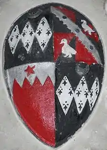 The family of FitzWarin (alias FitzWarren) appears to be the earliest recorded holder of the manor of Brightley, in the 12th century.[5] The family was a branch of the FitzWarin family, powerful Welsh Marcher Lords of Whittington Castle, Shropshire and of Alveston, Gloucestershire, which shares very similar arms. The Devon historian Tristram Risdon (died 1640) stated that Brightley became the residence of William Filius Warini (i.e. Latin for "son of Warin", French fils de contracted to fitz) in the reign of King Richard I (1189–1199), and stated him to be the son of "Fulk FitzWarren", who had inherited it from his father in the time of King Henry II (1154–1189).[2] A similar account is given by Risdon's contemporary Sir William Pole (died 1635) who stated: "William, sonne of Fulk Fitzwarren, receyved this land from his father in Kinge Henry 2 tyme" (i.e. between 1154 and 1189). The family then took the surname "de Brightley" and adopted a simplified, differenced version of the FitzWarin paternal arms, and several of that family named William succeeded one another for several generations at Brightley. One William de Brightley was Knight of the Shire in 1365. The senior line of FitzWarin became Barons FitzWarin in 1295 and were also from 1382[lower-alpha 3] feudal barons of Bampton, Devon and from 1391 co-heirs to the lands of the feudal barony of Barnstaple, Devon.[lower-alpha 4] The title Baron FitzWarin[6] and the feudal barony of Bampton and their share of the feudal barony of Barnstaple passed in the 15th century to their descendants the Bourchier family which made its principal residence at Tawstock in Devon, ancient seat of the barons of Barnstaple,[lower-alpha 5] about 6 miles north-west of Brightley. The Bourchiers were created Earls of Bath in 1536, and were highly influential in Devon. According to Risdon, Brightley passed from the de Brightley family via the family of Carew to the family of Coblegh.