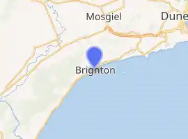 Brighton is a small seaside town within the city limits of Dunedin on New Zealand's South Island. It is located 20 kilometres southwest from the city centre on the Southern Scenic Route. The town faces a small bay which includes a broad sheltered beach. Other beaches extend from here. They make the area popular for summer day trips from Dunedin.