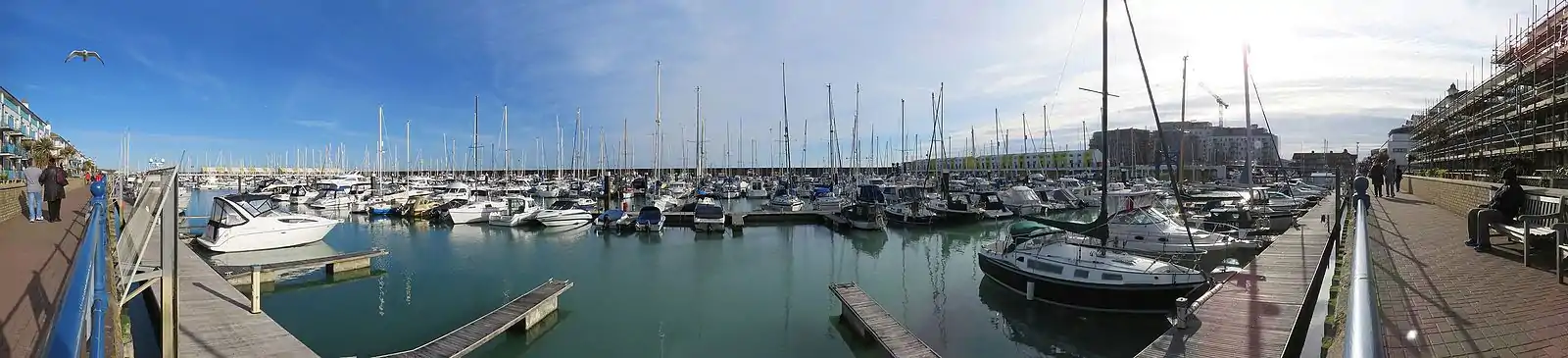 Brighton Marina is an artificial marina situated in Brighton, England. It features a working harbour and residential housing alongside a variety of leisure, retail and commercial activities. The construction of the marina itself took place between 1971 and 1979, although developments within it have continued ever since. The marina covers an area of approximately 127 acres (0.51 km2).[1]