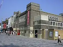 The North Laine area has a network of streets dubbed the 'Cultural Quarter', so called because of its concentration of theatres, galleries and small venues. This area covers New Road, the location of the Theatre Royal, and the Brighton Dome complex which includes the Pavilion Theatre, Corn Exchange Theatre and the Dome Concert Hall. Next to this is Brighton Museum and Art Gallery. Bordering New Road and the Dome is Pavilion Gardens which is home to the Royal Pavilion, former palace residence of King George IV. Opposite New Road is Jubilee Street, a modern redevelopment containing restaurant and cafe chains. It is also the location of the Jubilee Library, the city's central library.
