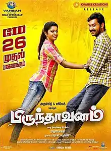 Brindavanam is a 2017 Indian Tamil-language comedy-drama film directed by Radha Mohan and produced by Shan Sutharsan.[2] The film stars Arulnithi and Vivek, while Tanya portrays the leading female role. Featuring music composed by Vishal Chandrasekhar, the film began production during August 2016 and was released on 26 May 2017.[3][4]