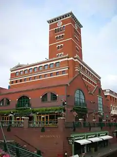 Water's Edge was the first building to begin construction in the Brindleyplace scheme. The building contains 60,000 square metres (645,835 sq ft) of retail space along a canalside location, opposite the International Convention Centre. In 1995, it won the Top Honour Award for "Excellence on the Waterfront".[23] It is believed that up to two million people visit The Water's Edge each year, spending up to £13.9 million.[24] Restaurants and Cafes located along Water's Edge include Café Rouge, Carluccio's, Pizza Express, Gourmet Burger Kitchen, Slug and Lettuce and Wagamama.