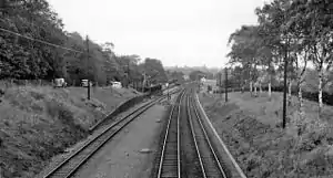 The station was next to the B4027 road, with the booking office on the overbridge and covered staircases down to each platform on which passenger facilities were limited to a shelter on the down platform. There were two long sidings, one with a loop which passed through a goods shed.[3]