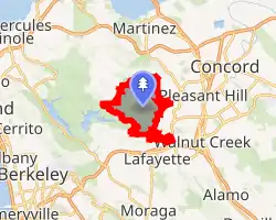 The park is located in rolling hills of the East Bay region, near Martinez, Lafayette, Walnut Creek, and Pleasant Hill. The western end of Briones Regional Park is adjacent to the Briones Reservoir, operated by EBMUD across Bear Creek Road.[1]