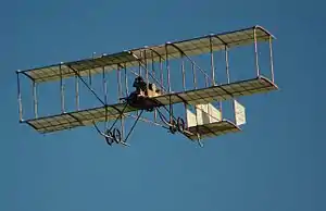 A further two were sent to India, including No. 12, the first Boxkite built with an extended upper wing. In India the first flights were made by Henri Jullerot in Calcutta on 6 January 1911 before a crowd of 100,000.[26] He was invited to take part in the Deccan cavalry manoeuvres that were about to take place, and made a number of flights carrying Captain Sefton Brancker as his observer. He also took part in the Northern cavalry manoeuvres at Karghpur. Flying conditions there were demanding, with many rough landings caused by the terrain, and eventually No. 9 was cannibalised to provide spares to keep No. 12 flying.[27]