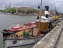 Normally moored in front of the developing new museum is the collection of historic vessels, which included the 1934 fireboat "Pyronaut" and two tugs: John King built as a diesel tug in 1935 and Mayflower, the world's oldest surviving steam tug built in 1861.[1][2]