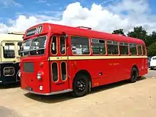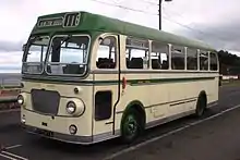 The single-decker ECW body was just 7.50 feet (2.29 m) wide and used some similar styling elements to those built for the heavier Bristol MW. The bus bodies were 9.42 feet (2.87 m) high but the coaches were a little taller at 9.83 feet (3.00 m); the length varied depending on the chassis and whether it was to bus or coach style (see table below).[1] A forward entrance was provided opposite the driver's position. Seats were forward-facing in pairs, but where wheel arches protruded above the floor of the bus body, the seats were turned sideways to give sufficient leg room.[2]