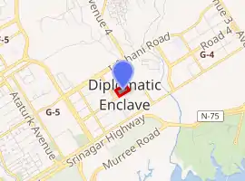 The British High Commission in Islamabad is the chief diplomatic mission of the United Kingdom in Pakistan. It is located in the Diplomatic Enclave in Islamabad. The current British High Commissioner to Pakistan is Christian Turner, and the Deputy High Commissioner is Alison Blackburne.[1] The UK also has a Deputy High Commission in Karachi and a Trade and Investment Office in Lahore.[1]