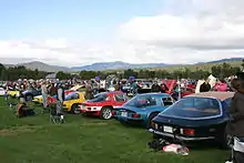 The main car show, held on Saturday, uses a field just north of the center of town, and runs from morning until evening. Show cars are divided into approximately sixty categories and organized by marque when parked on the field.