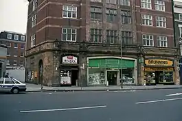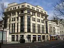 British Museum station was opened on 30 July 1900 by the Central London Railway (CLR; now the Central line), with its entrance located at No. 133, High Holborn (now a branch of the Nationwide Building Society), near the junction with New Oxford Street.[1] In December 1906, Holborn station was opened by the Great Northern, Piccadilly and Brompton Railway (GNP&BR; now the Piccadilly line) less than 100 yards away. Despite being built and operated by separate companies, it was common for the underground railways to plan routes and locate stations so that interchanges could be easily formed between services. This had been done by other lines connecting with the CLR stations at Oxford Circus and Tottenham Court Road, but an interchange station was not initially constructed between the GNP&BR and the CLR because the tunnel alignment to British Museum station would not have been suitable for the GNP&BR's route to its Strand station (later renamed Aldwych). The junction between High Holborn and the newly constructed Kingsway was also a more prominent location for a station than that chosen by the CLR.