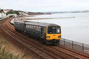 Great Western Railway (GWR) was one such operator of the Class 143. Its units were mainly used on short-distance services around Exeter, but had previously been common on various services in the Bristol area as well. At one point, as part of the franchise's plans to modernise its fleet, GWR planned to withdraw its remaining eight units by December 2019 via a cascade programme that would see the type being entirely replaced with Class 150s.[19] On 11 December 2019, the Department for Transport issued a dispensation, allowing GWR to continue to operate its Class 143 fleet up until 31 December 2020.[8] Their fleet was withdrawn in December 2020.[10]