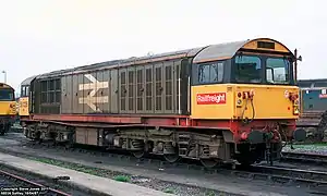 During the mid-1970s, British Rail operated several different diesel locomotives that had been categorised as Type 5, these being a relatively high-powered locomotive suited to heavy freight trains, the newest of which being the British Rail Class 56. Initial experiences with the Class 56 had proved the type to be somewhat unreliable in service, a factor which had led to dissatisfaction amongst several of British Rail's freight customers.[2] Officials within British Rail also observed that the international market for a competitive freight locomotive could be quite lucrative, and thus there were pressures to enter the export market with a suitable design. Furthermore, British Rail had forecast that the domestic rail freight sector was set to grow, and that the prospects for such growth only improved if more capable locomotives, particularly in terms of reliability, were available to service such trains.[1]
